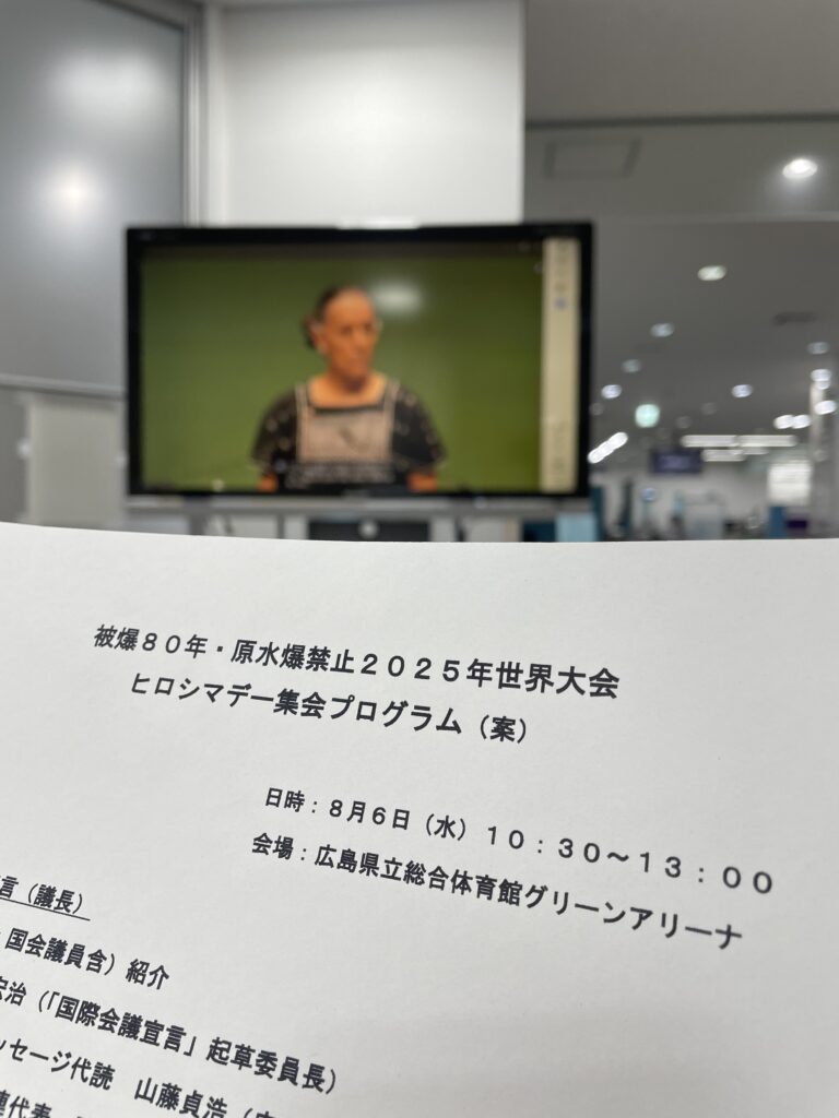 yamanashi 投稿者2025年8月6日返信 甲州市『原爆と人間パネル展』会場にて、広島での原水爆禁止世界大会2025の様子観てます。 みんなで歌える新しい歌も披露されましたね。 広島決議(案』が採択されました。