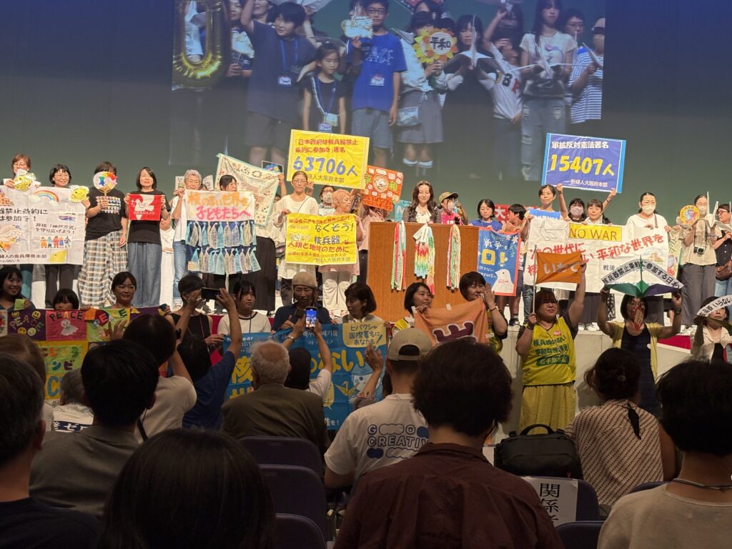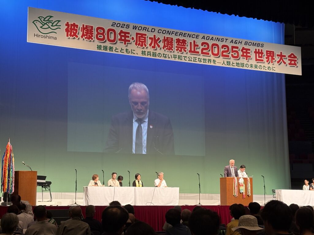 原水爆禁止2025世界大会in広島 投稿日: 2025年8月7日2025年8月7日 投稿者: yamanashi 8月4日〜6日原水爆禁止世界大会の広島大会が開催されました。被爆者の高齢化が進み、被爆の悲惨さと苦しみをどう伝えていくのか、核兵器廃絶に向けた運動をどう進めて行くが課題となりました。海外から沢山の方々が参加し熱気のこもった大会となりました。