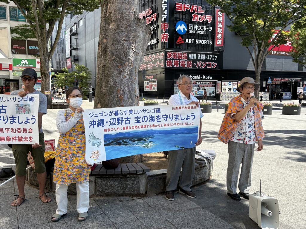 終戦の日、甲府駅南口で戦争反対そして沖縄の現状訴えました